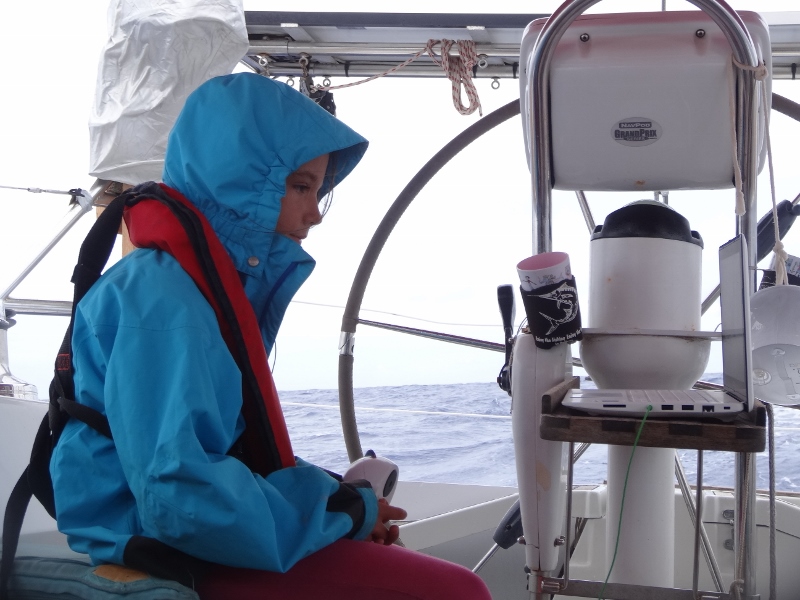 Quand il faisait encore nuit, j'ai regardé un film sur l'ordinateur en faisant des pauses toutes les 20 minutes pour vérifier qu'il n'y ait rien à l'horizon et que tout fonctionne bien.