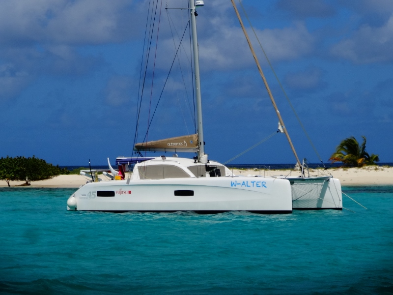 Grâce à Sev'on Seas, nous faisons la connaissance de W-Alter, dont nous avions entendu parler par Vaa Nui car ils naviguent sur le même catamaran, un Outremer 45.